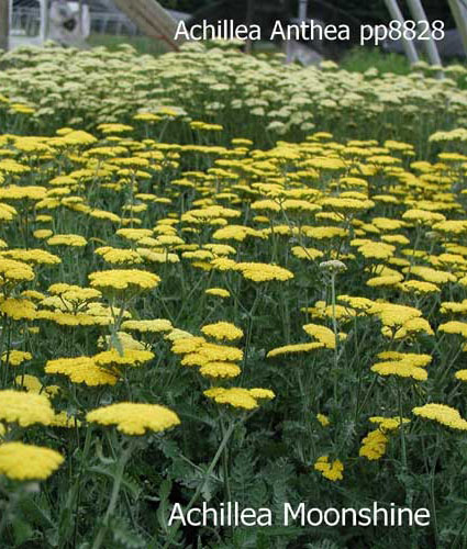 Clusters of sulfur-yellow flowers that bloom June through August atop attractive gray-green foliage. May be used in a border or a cut flower garden.