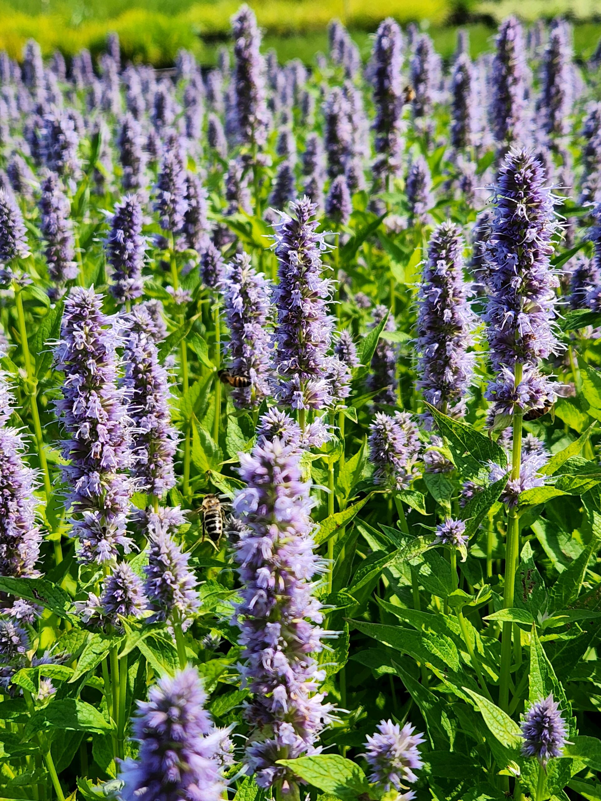 Fragrance of licorice draws butterflies and hummingbirds to this little gem. Long lasting, soft blue flower spikes are showy in July through frost. Their desert heritage makes Agastache heat and drought tolerant.