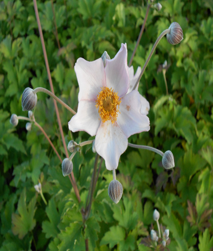 Single silvery-pink pastel blooms with yellow centers dance gracefully above this low-maintenance mounding perennial from late summer to frost. Best grown in rich, evenly moist, well-drained soil.