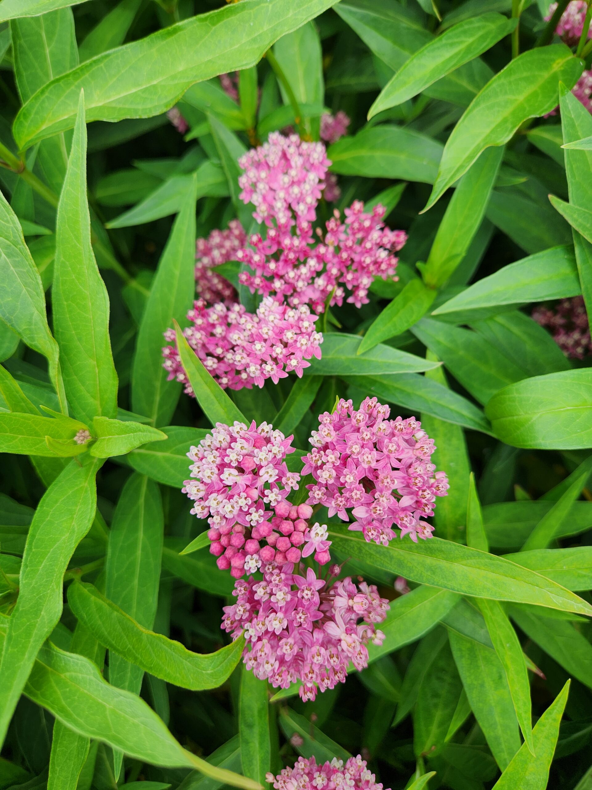 Rose-pink flowers in large, compact clusters from midsummer to early fall. These have a heavenly vanilla scent. Butterfly paradise! Dark green foliage and milkweed seed pods add to this non-invasive wonder.