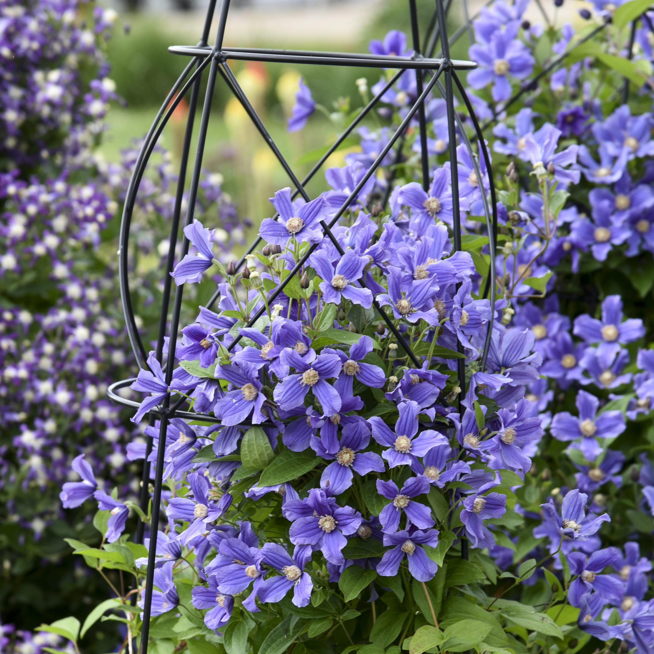May-Sept Large 2½-3″, indigo blue flowers with darker midribs and lighter margins.