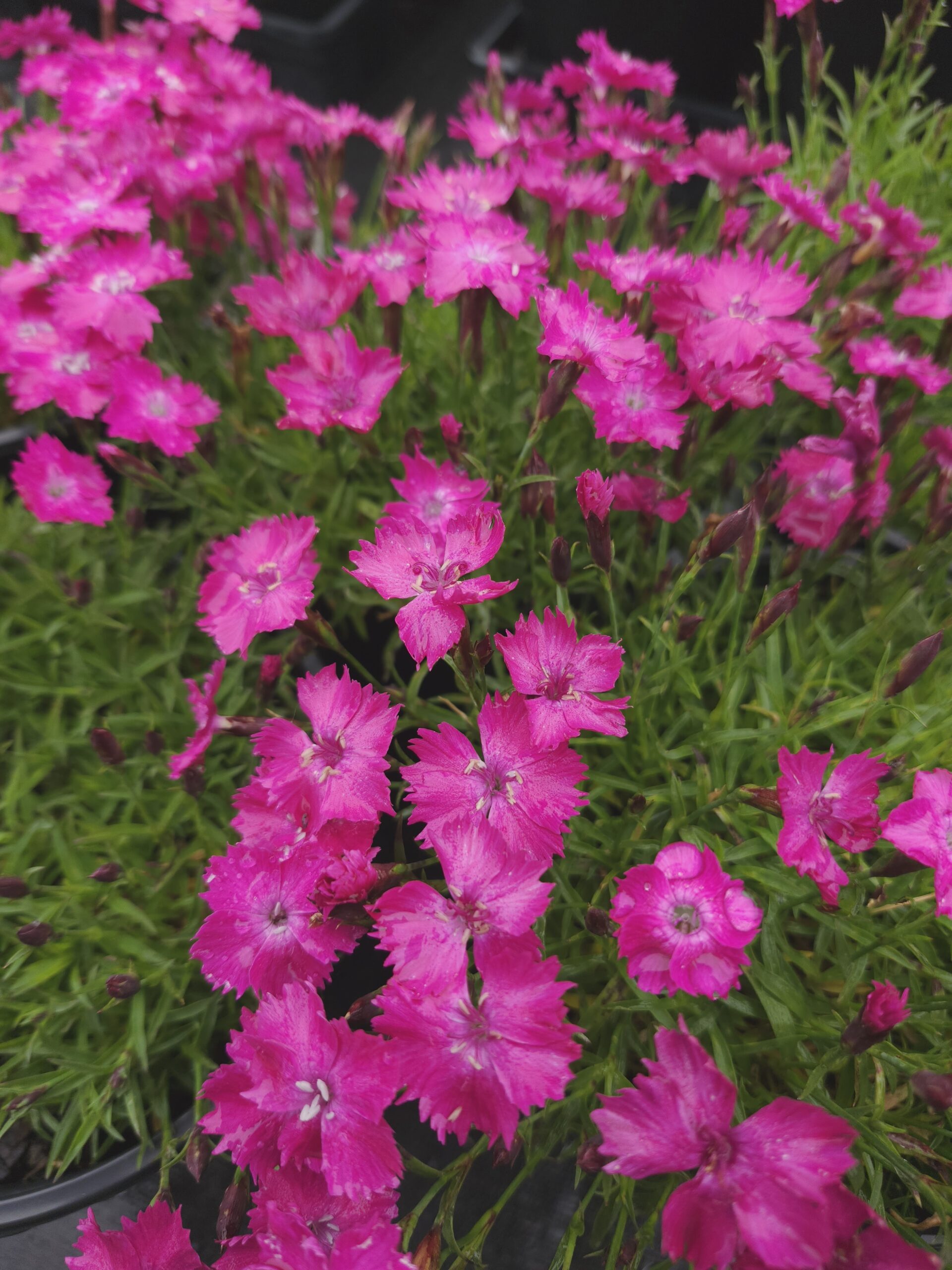 Dianthus is great as a container plant and useful in borders, rock gardens, and mass plantings. Intense colors range from pink to fire-red to coral to white, accompanied by sweet and spicy aromas. Dianthus prefers well-drained soil and deadheading will prolong blooming. Most varieties will rebloom in the fall.