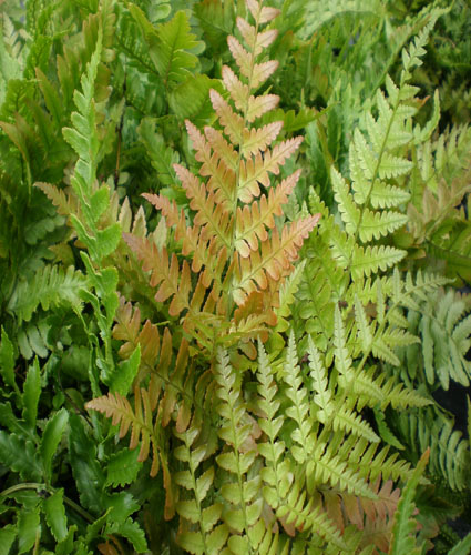 Fronds turn from bright copper to soft green to russet-orange again, all on an evergreen habit that looks great in the partly shaded bed or border. Best leaf color is achieved in part sun. Will tolerate dry conditions once established.