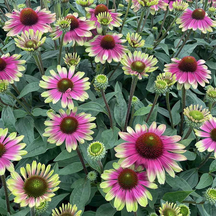 Echinacea is great for cut flowers, borders, mass plantings, and colorful interest in the garden. Their colorful flowers range from singled to double to quilled with scents of sweet honey to rose and appear from June until frost. Echinaceas prefer well-drained soils, are deer resistant, and attract butterflies.