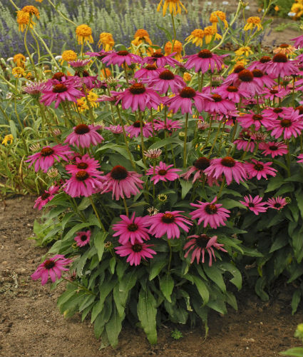 Echinacea is great for cut flowers, borders, mass plantings, and colorful interest in the garden. Their colorful flowers range from singled to double to quilled with scents of sweet honey to rose and appear from June until frost. Echinaceas prefer well-drained soils, are deer resistant, and attract butterflies.