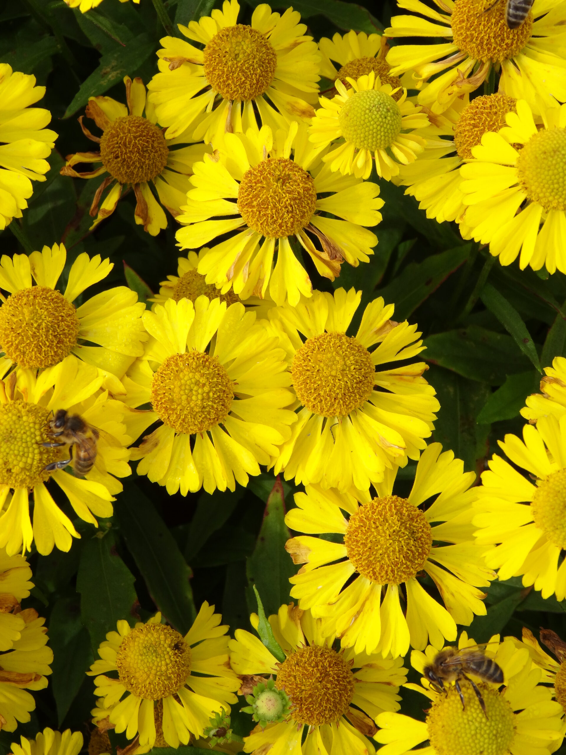 Cheerful, button-like flowers with frilly skirts appear in mid-summer and into fall. Good branching habit, strong stems, excellent mildew resistance, and terrific for cutting. It has an unfortunate common name “Sneezeweed”, but it doesn’t cause any allergies.