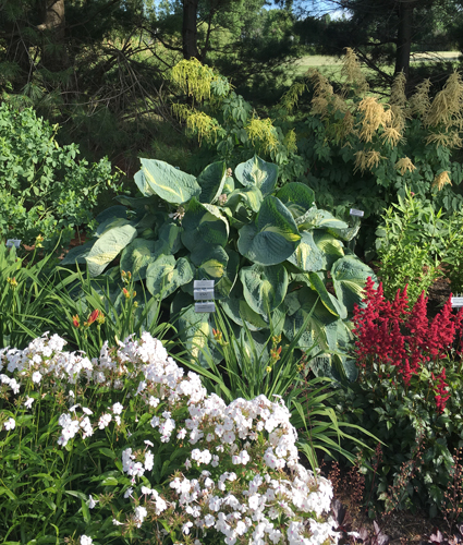 An improved ‘Eskimo Pie’. A wider bright blue and bright green feathered margin meshed well with the cream-colored center and the white flowers that bloom in early summer. Slug resistant.