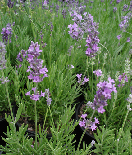 Slender green-gray fragrant foliage with lavender flowers throughout summer. Nice as a small hedge or in mass.