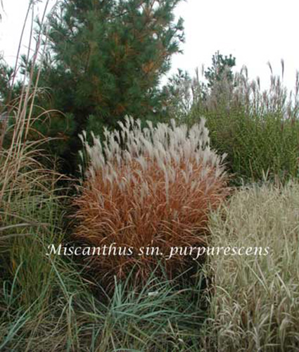 A compact cultivar with pale green blades turning an outstanding orange-red color in the fall. Silver plumes appear in August lasting through winter. Excellent specimen.