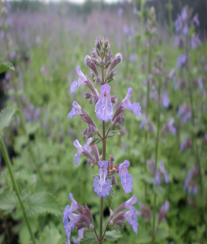Catmint height: 12-14″ zone: 3 habit: low mound Compact growing habits with lavender-blue flowers. Lovely summer-blooming border plant. Shear back to encourage new growth for fall performance.
