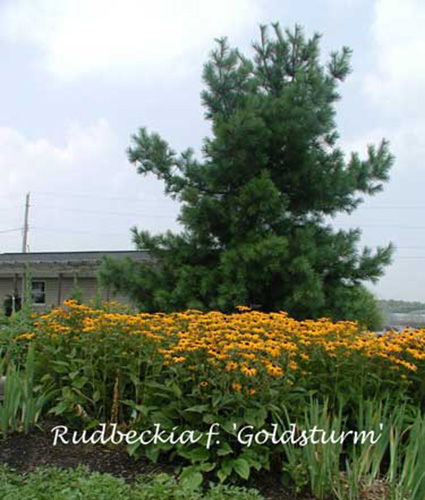 Large deep green foliage gives way to the tall, sturdy stalks holding abundant gold flowers with black eyes in July through October. Use as a border or background masses.