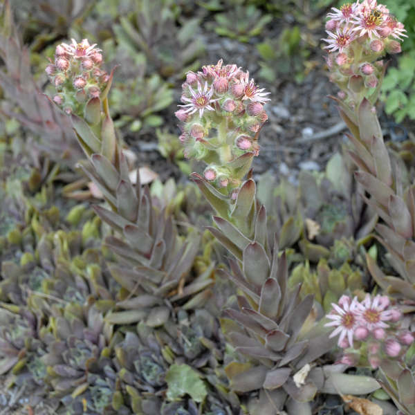 Medium sized rosettes of green and purple may slightly range in color throughout the season. Very attractive as a container plant.
